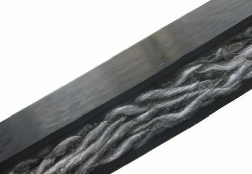 2. 帶體縱向采用高強(qiáng)度、低延伸優(yōu)質(zhì)聚酯長絲,橫向采用高強(qiáng)度,模具適中的尼龍長絲,具有強(qiáng)度高、伸長小、帶體輕、帶體不脫層、抗沖擊、抗撕裂、帶體成槽性好等優(yōu)點(diǎn)。
